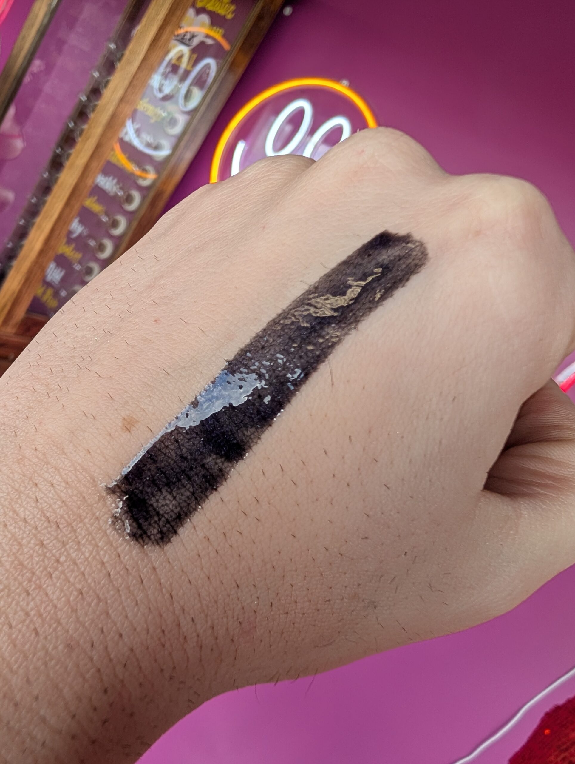 An eerie chill, whispers in the night, and shadows stirring; What lies beyond the other side? We may never know, but you can look like you do with this shimmery black gloss. Wear it alone for an opaque, buildable veil, or top your favorite black lipstick for a boost of hydration and shine!